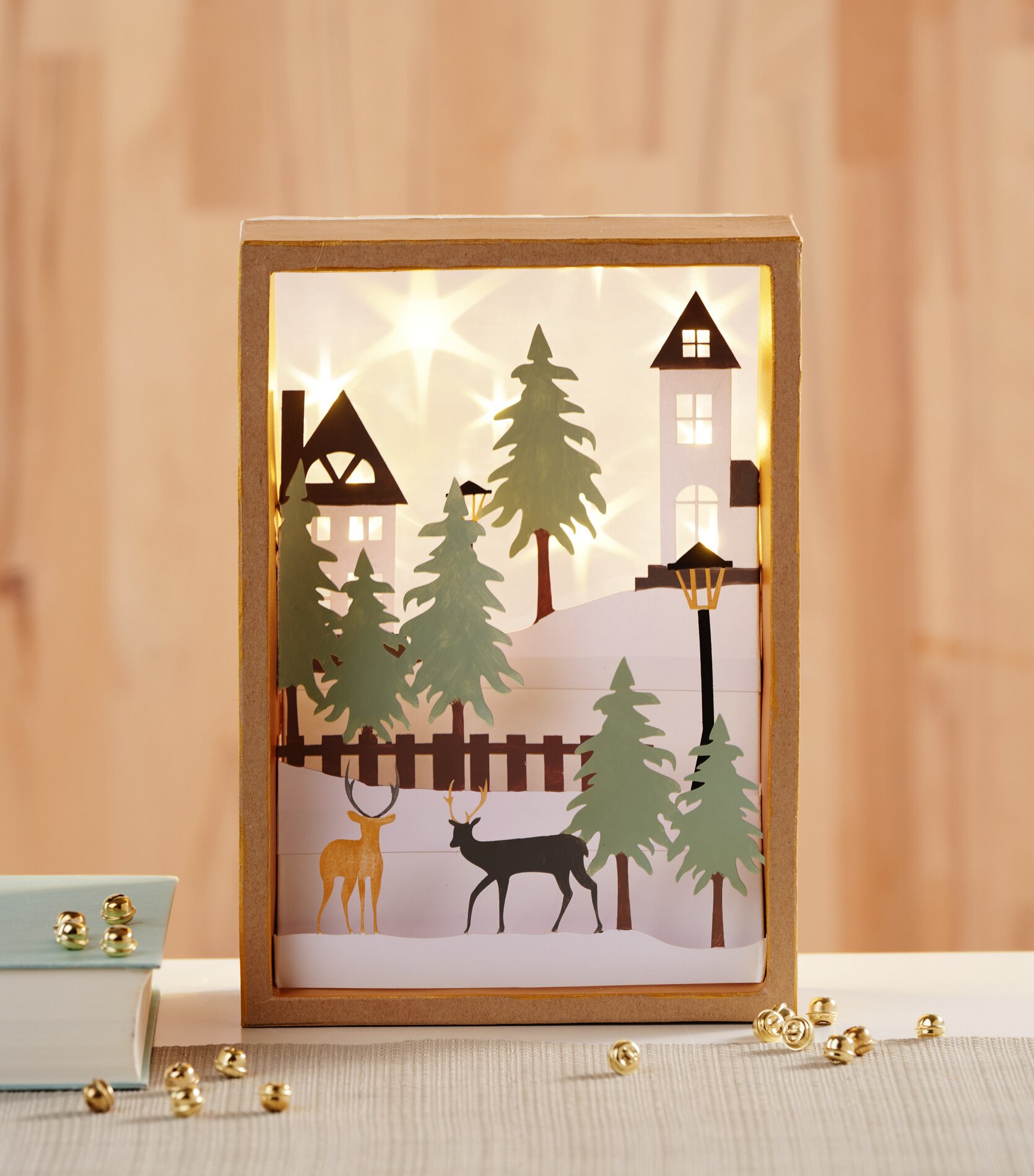 The 3D look of this image is created by crafting silhouette pieces in three different heights, one behind the other: