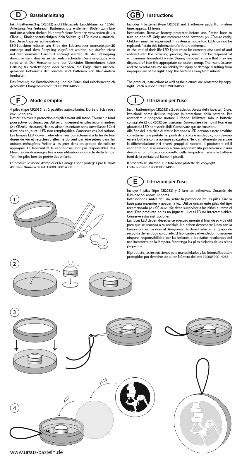 • 2 LEDs lights, incl. 4 batteries and 2 glue pads