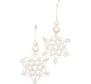 The handicraftMacramé set "Snowflakes" contains all materials for Knot techniques making two snowflakes with a height of approx. 10 cm and a Ø of approx. 7 cm. The knotting pattern in original size, the illustrated step-by-step instructions and the illustrations of the knotting techniques used help to realize the knotting project.