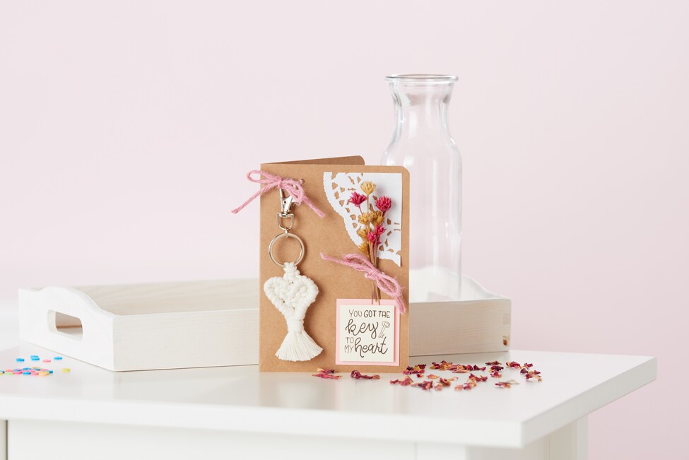 With this beautiful idea, you can give your loved one a huge treat. With the card you can write a few dear words and give the keychain as a gift for on the go.