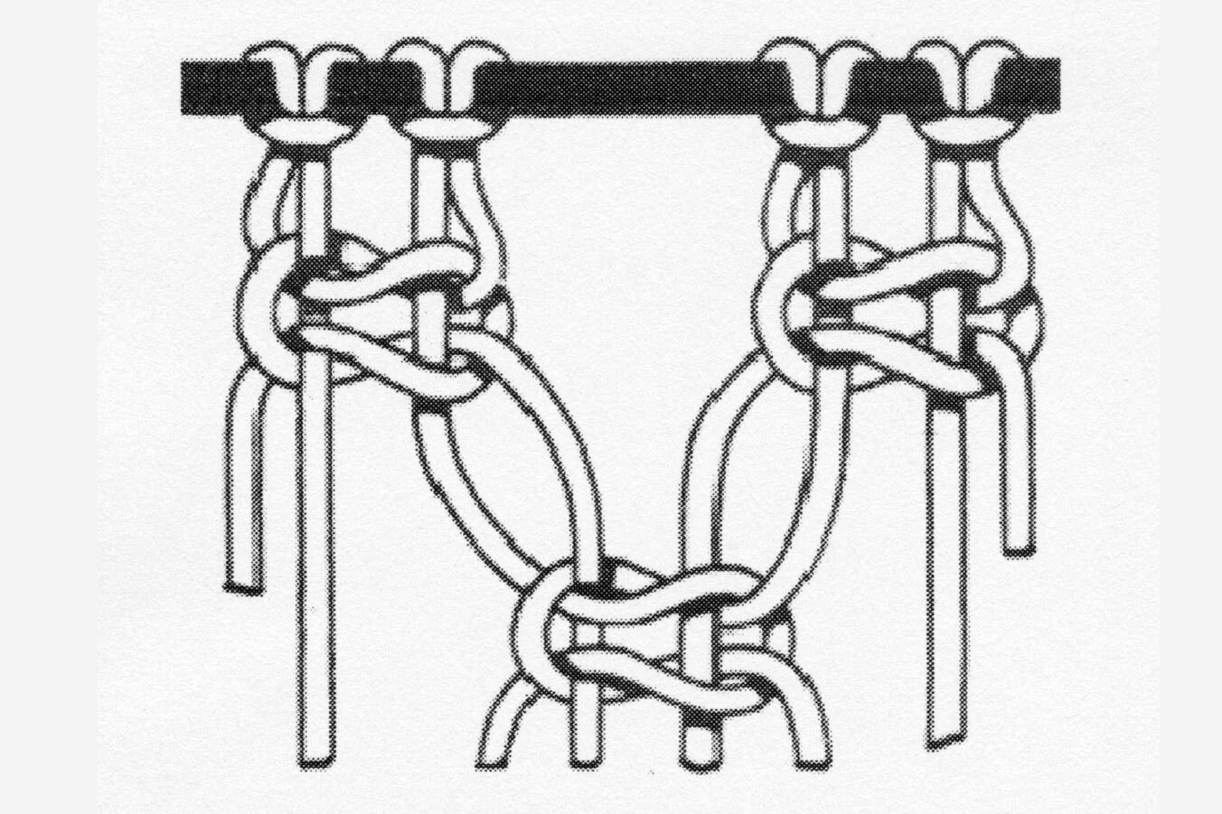 Knot 4 weaver's knots with 4 threads each, so that 7 strands are knotted next to each other.