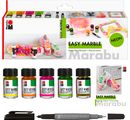 The Marabu EASY MARBLE SET NEON is a marbling set in great neon colours. In this set are 5 x 15 ml EASY MARBLE colours, 1 permanent Marker and a manual. The marbling paint is ideal for dipping marbling of plastic, glass, wood, metal, as Polystyrene well as for flat marbling of Paper or papier-mâché.