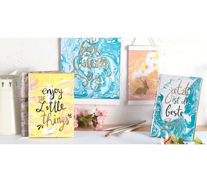 Marbling is a traditional handicraft for imitation Marble. Until today this handicraft has lost none of its charm. On the contrary, with these new colours, the theme is gaining momentum again. Marbling is easy and with the enclosed instructions, everything goes by itself.
