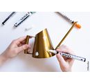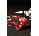 Preparations: Before first use, shake the marker with the cap closed for 60 seconds until the mixing ball makes a distinct clacking sound. Slowly press (pump) the tip several times on a piece of test paper until ink is visible in the tip. When the ink flow is activated, the tip will slowly fill up. To test, the marker should be written on the test paper. Processing of material: The marker can be used for a variety of techniques. To ensure an even and consistent ink application, pump regularly.