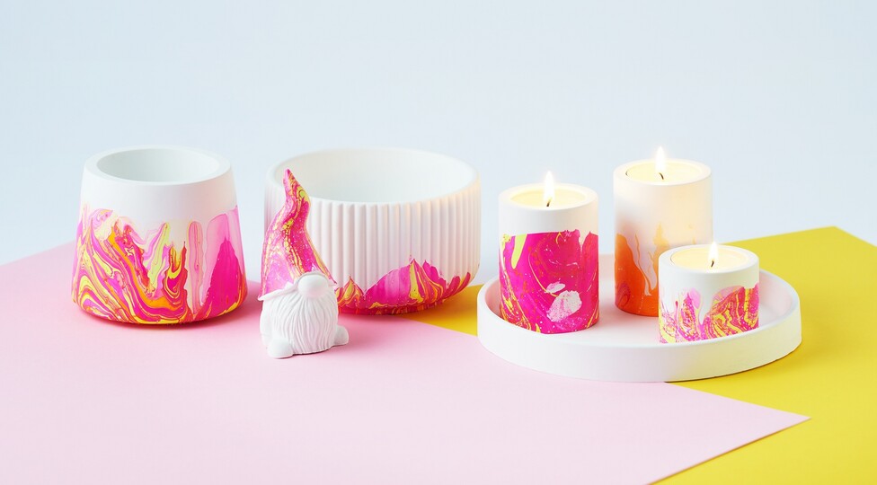 Discover your creative streak with fascinating marbling techniques! Marbled shapes add a touch of elegance to your home and make excellent decorative eye-catchers. In this step-by-step guide, we'll show you how to create impressive works of art using casting slip and marbling paints. Ready for your DIY-Adventure?