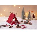 Silk Clay is used to model small mushrooms, plants and a campfire. A small tent made of felt with miniature branches made of wood can be tinkered with the help of the template. With a few simple steps, you can gradually create a great nature scene that is perfect for placing in front of a Secret Santa door.