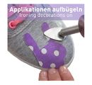 The small, concentrated ironing surface makes it possible to iron particularly accurately and with great pressure. Even small fabric appliqués that you have created yourself can be quickly and easily ironed on in combination with iron-on fleece.