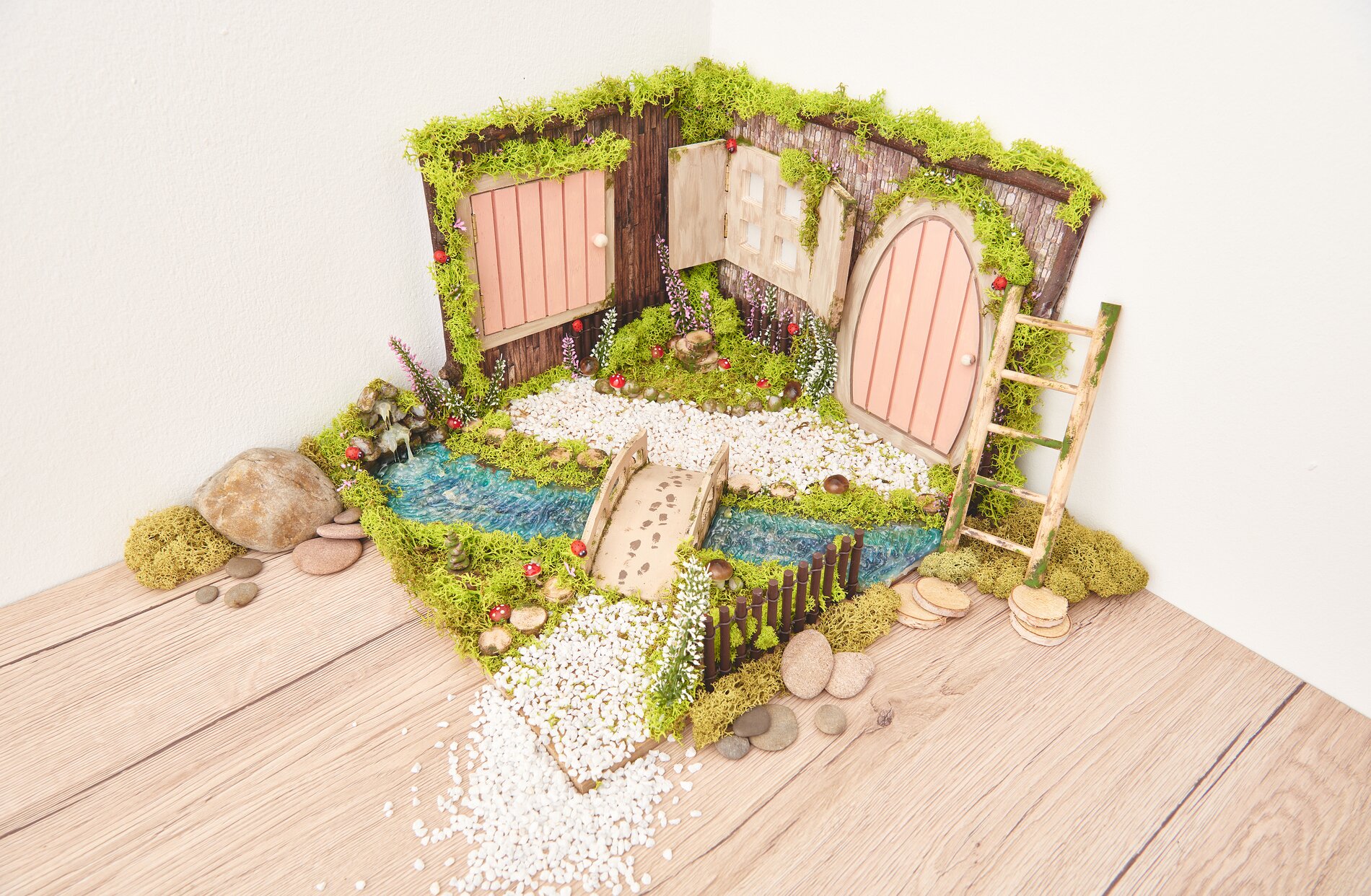 Add the finishing touches to your scene by adding moss, cut heather, mushrooms, wooden discs and small ladybugs. These details will liven up your miniature world and make it appear realistic.
