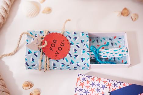 Stamp small messages on punched out Paper and Embellishment. wrap the boxes according to your personal taste with and Jute ribbon the messages you have made yourself. The accessories can be fixed with Handicraft glue or on both sides Adhesive tape .