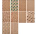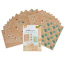 This Motif block"Kraft paper with motif print" has a format of DIN A4 and 20 sheets. Of these 10 sheets have a paper weight of 230 g/sqm and 10 sheets 120 g/sqm. You receive 10 different motifs