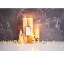 Beautiful motif cardboard "Golden Stars" with a size of approx. 50 x 70 cm and a paper weight of approx. 240\ g/m². The motif cardboard is printed on one side with wonderful golden stars in different sizes with high gloss finish.<bold/>