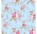 A wonderful Motif fabric linen look "Scraper-Blue" with a width of 140 cm. This is a fabrics by the meter with a fabric weight of 170 g/m². The fabric is printed on a light blue background with a rose pattern.