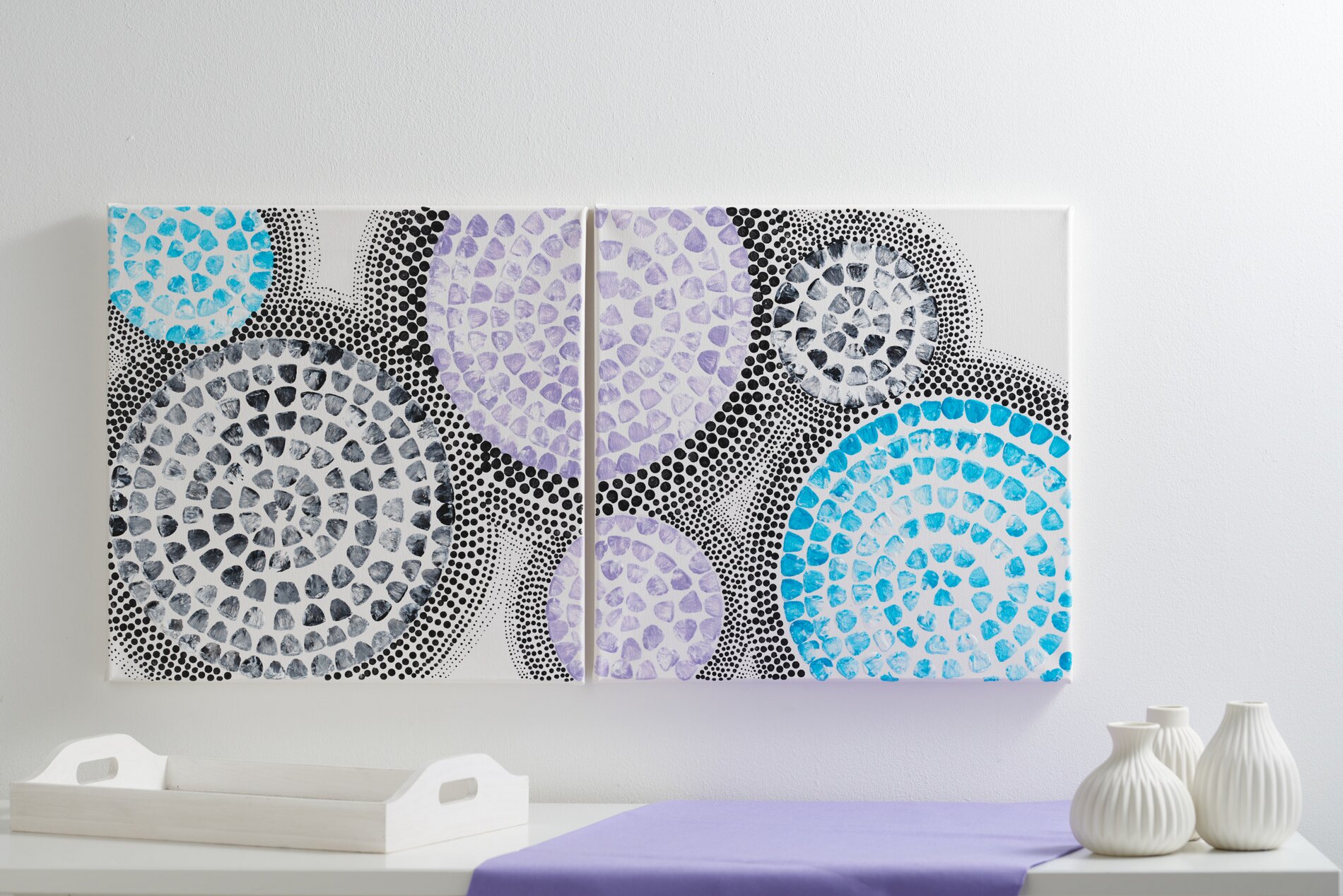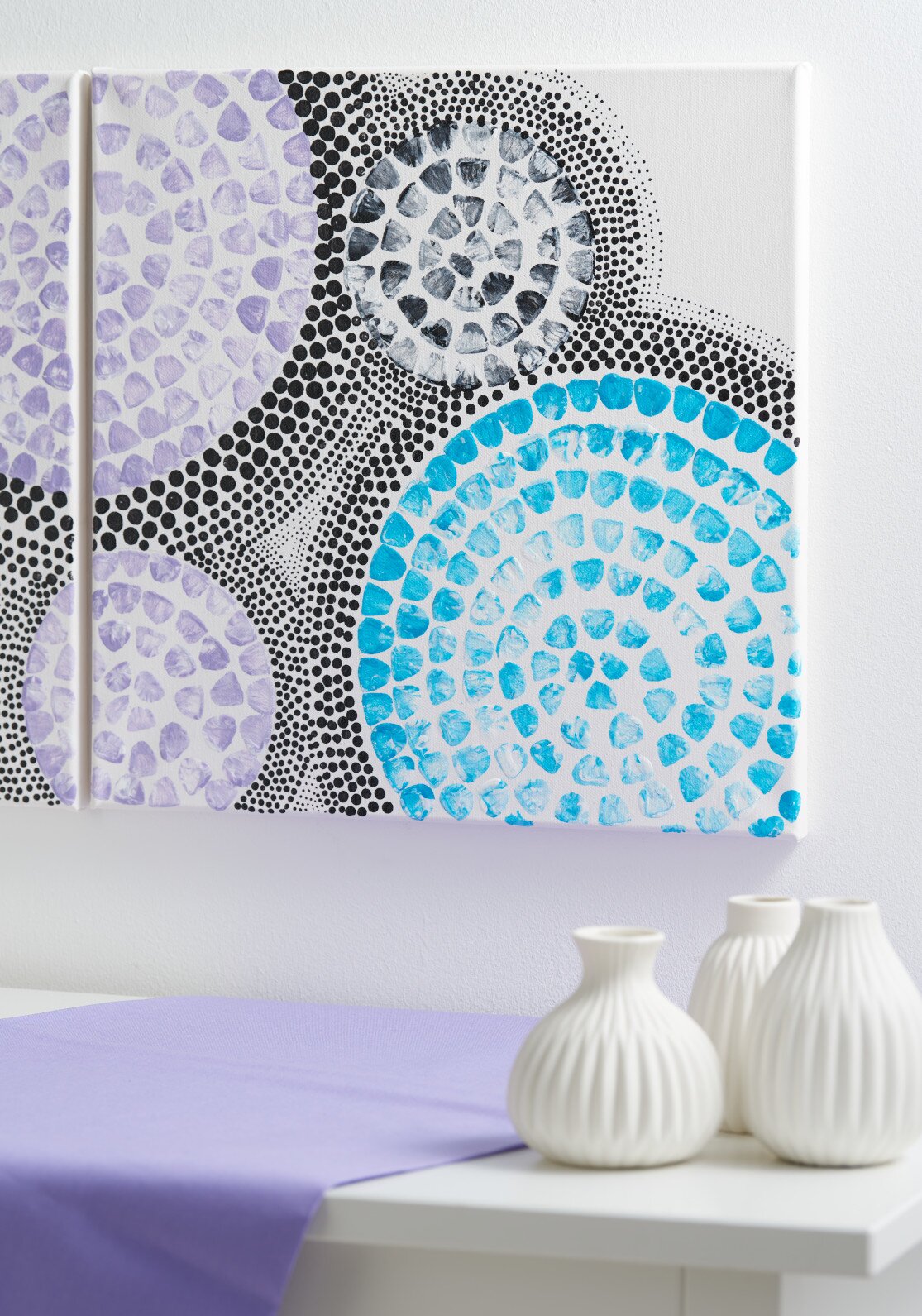 Lightly draw circles of different sizes with a pencil as you like. You can use household items such as plates, glasses, rolls of tape as an aid for this.