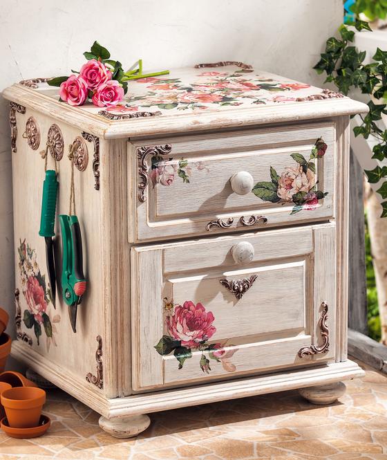 Cut out the different motifs from Straw silk paper and arrange them according to your taste, stick them on with Napkin varnish .