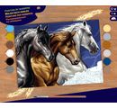 Painting by numbers "Wild horses" with a size of approx. 38.2 x 29.2 cm. The set includes 1 printed painting template, 12 colours, 1 brush and 1 instruction