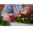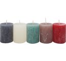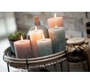 The solid-colored Pillar candle "Rustik" has a Ø of about 6 cm and a height of about 8 cm. The burning time of the high-quality candle is about 25 hours. There are 4 pieces included.