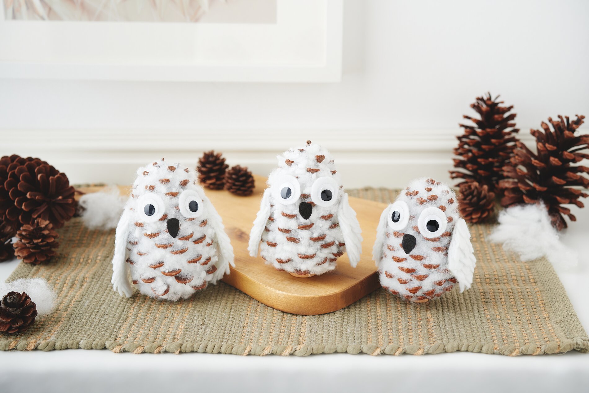 Creative DIY-Instructions: Make fluffy owls from pine cones
