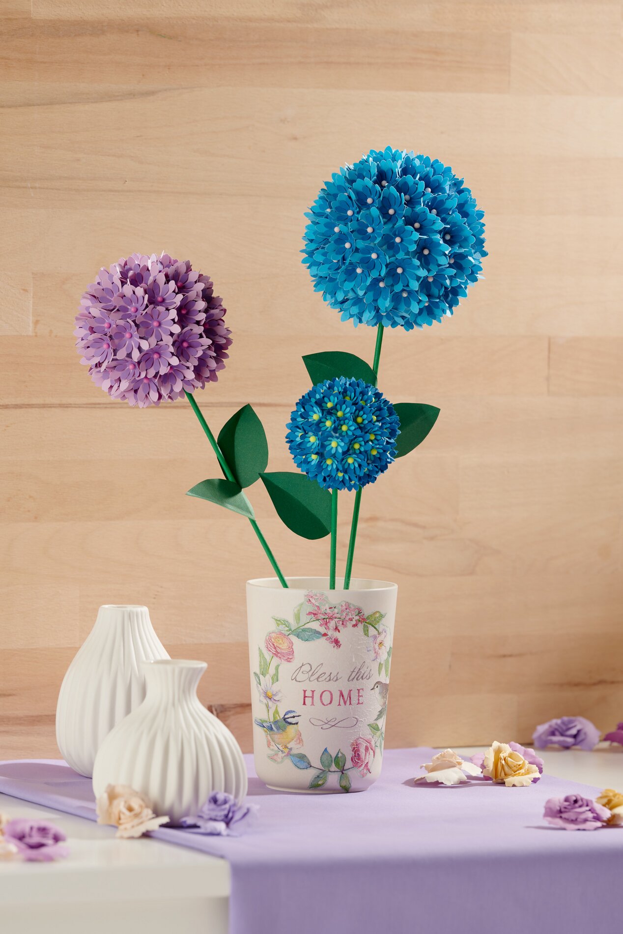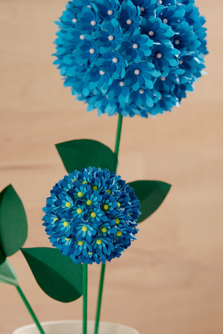 These paper pompom flowers are a great example of how simple crafting techniques can be used to make a sophisticated looking floral decoration.