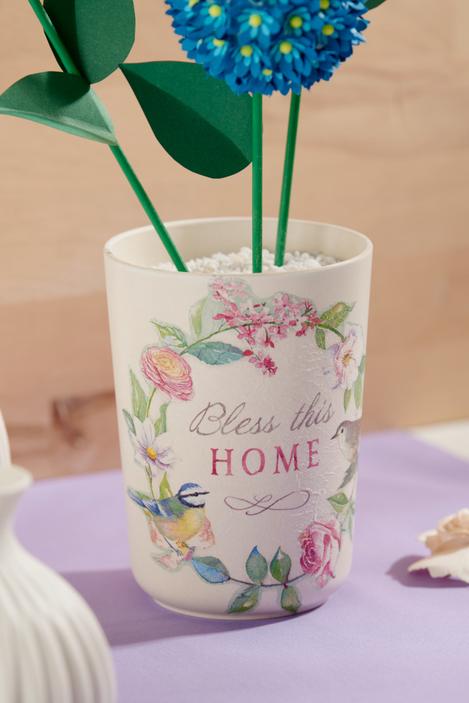 First, cut out the napkin motif, glue the top printed paper layer of the napkin with napkin varnish on the decorative container. To do this, coat the glue area on the container with the napkin varnish, apply the napkin motif over the surface with the help of a brush and paint over this with another layer of varnish.