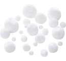 Pompoms in the colour white with a size of approximately Ø 1 cm, 2 cm, 2,5 cm, 3,5 cm and 5 cm You will receive 30 pieces. Pompoms. The material is polyacrylic
