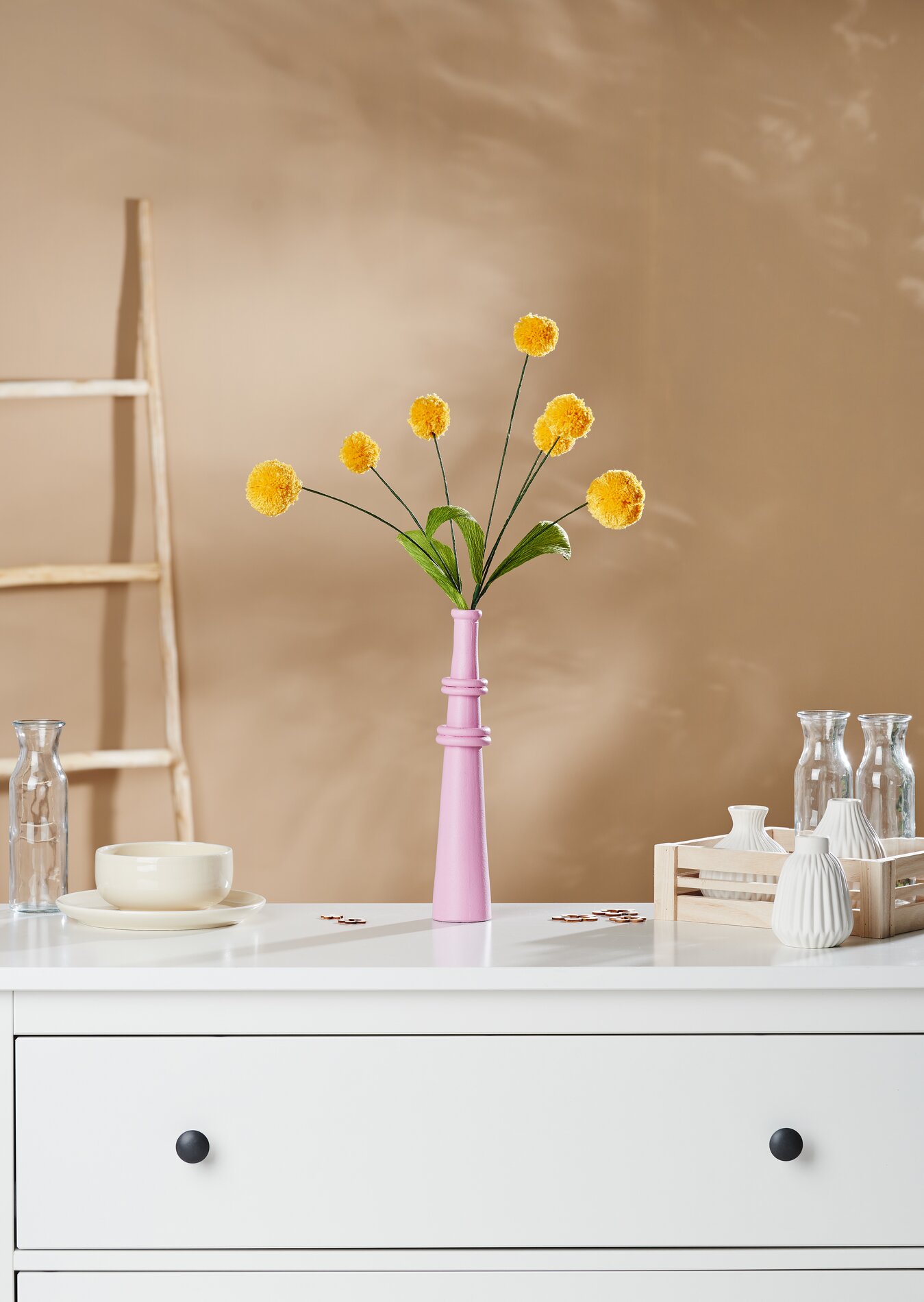 In this idea, the popular trend flower "Craspedia" is easily homemade! Learn here how you can make the pretty pompom flowers yourself and arrange them in a vase with the help of the VBS Pomponmaker set.