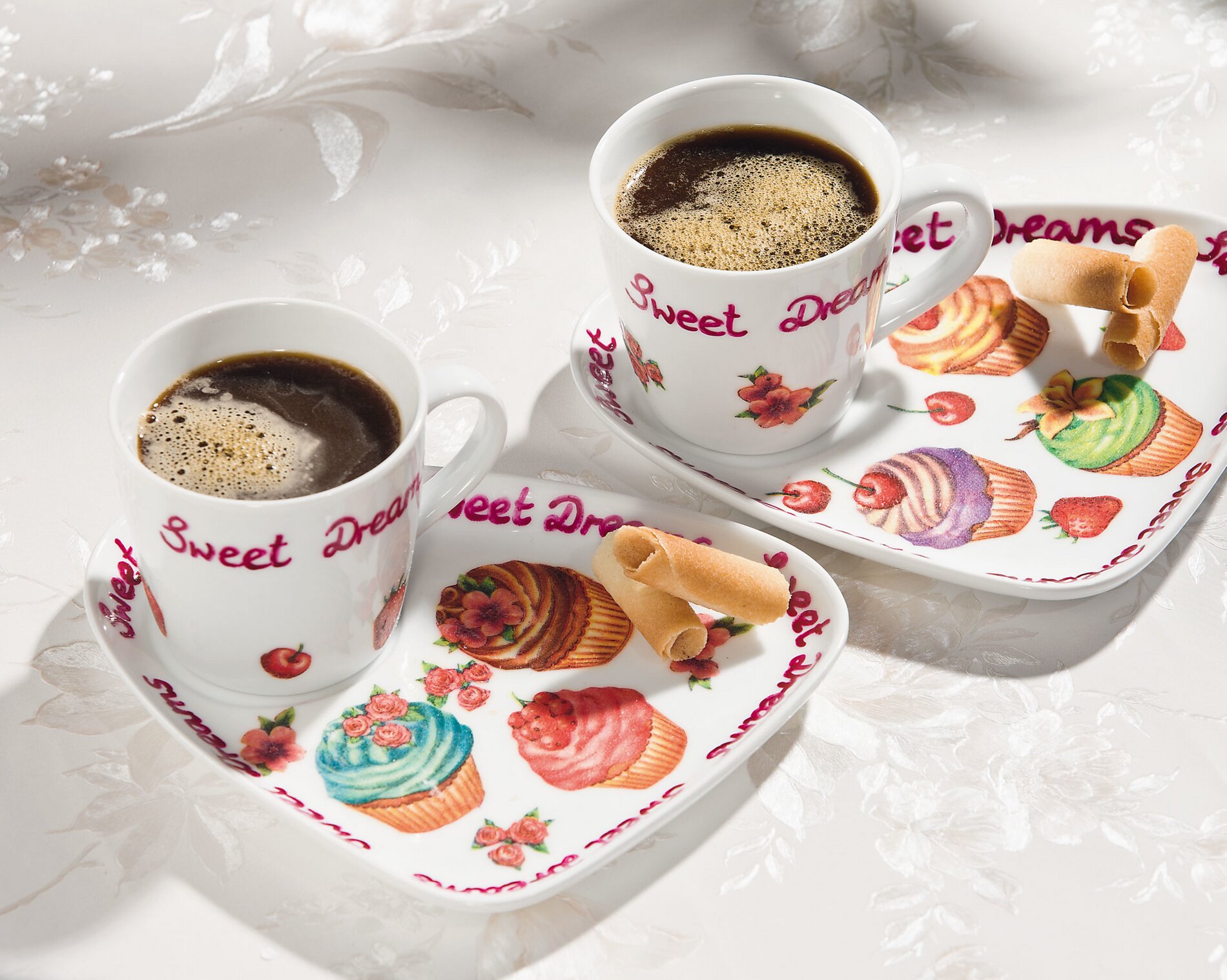 On porcelain saucers there is not only much space for the biscuits to Coffee, be placed on but also for the design with pretty napkin motifs and porcelain painting pens. After baking in the oven, the self-designed porcelain can be washed by hand.