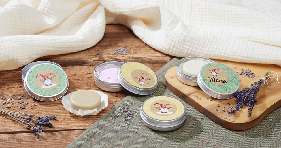 Self-poured soaps are an excellent gift idea for birthdays, Christmas or just as a little present. Packaged in beautifully decorated cream tins, the nourishing soaps really make a statement.