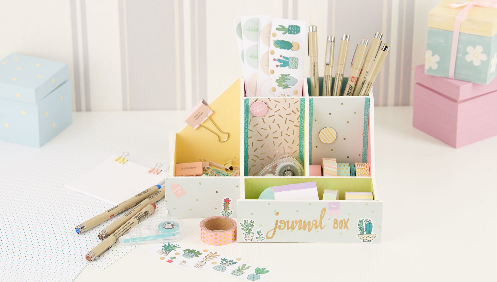 Already a great journaling Organizer has been created. Fill the individual compartments with your coloured pencils, decorative ribbons and other accessories and look forward to your next journaling project!