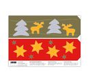 3 motif sheets DIN A5, printed on both sides in color, motif size stars approx. 3.2 to 10.8 cm, moose approx. 3.9 to 9.9 cm, snowflakes about 4.7 to 8.2 cm, paper weight about 300 g/m²