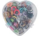 Whether you want to spice up clothing, bags or home accessories - the 55 bright eyelets in 11 vibrant colours offer you endless design possibilities. Thanks to the practical storage in the heart-shaped box, you always have an overview of your colourful collection.