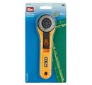 The Rotary cutter Maxi from Prym is indispensable for patchwork cutting, quilting and other sewing work, as it can quickly and easily cut through many different fabrics and several layers of fabric at once. It Rotary cutter cuts 4 to 8 layers of fabric with millimetre precision and without any build-up. Even up to 20 layers of fabric can be cut simultaneously. Thanks to the very sharp blade, you can easily cut through thick fabrics and materials such as fleece and Linen, leather, Jeans-Fabric, shaggy fabrics, terry cloth etc. The blade size Ø 45 mm is best suited for cutting straight and multiple layers of fabric. You can cut both forwards and backwards. The blade guard can be easily pushed back and forth with your thumb.
