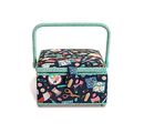 With its dark blue cotton fabric and sewing utensil decor, it is a real eye-catcher. The square sewing basket is 23 cm wide, 14 cm high and 23 cm long and thus offers you plenty of space for your sewing utensils. In addition, the sewing basket is equipped with a practical magnetic clasps.