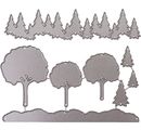 Beautiful punching template "In the forest" for all common punching and embossing machines. The trees and firs have a size of about 0.8 x 1.5 cm to 12.6 x 2.8 cm.