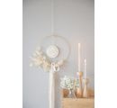 Beige macramé ribbon is great for floral decorations in wreaths, floral arrangements and bouquets. Also great for creating vases and table decorations in country style. Class in combination with delicate colors, wooden elements, scatter pieces, dried flowers and much more.