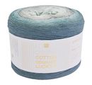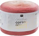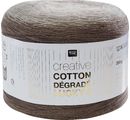 Cuddly Rico Design Creative Cotton Dégradé Lucky 8 made of 50 % cotton and 50 % polyacrylic. The ball has a weight of about 200 g and a length of about 800 m. A needle size of 3.5 is recommended for processing.