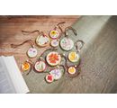 The Rico Design Mix Set pressed flowers "Pink Violet" contains 11 dried flowers and leaves of natural material, which are partially colored.