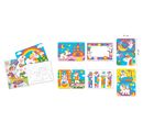 A great Sabbiarelli Sand-it for Fun Smart kit Unicorns Land with 8 refillable pens (colored sand) in white, black, purple, yellow, light blue, pink, dark green and orange, 7 adhesive sheets with 8 drawings, 4 bookmarks, 1 picture frame, 2 scrapers and 2 tubs of paper. The adhesive sheets have a format of 15 x 10 cm. A set of different motifs and materials for painting with sand. With instructions and usage examples as QR code for video tutorials.<bold/>