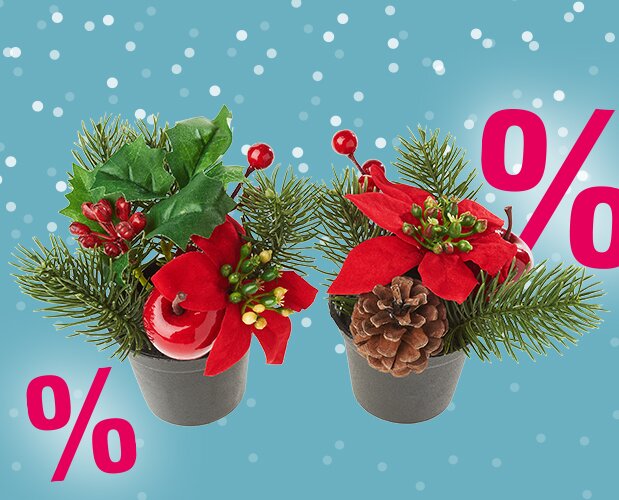 Christmas arrangement with fir tree in a pot, 2 pieces