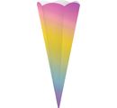 Great 6-cornered school gift bags cutout, rainbow in pre-cut shape with a height of approx. 69 cm. The blank of cardboard has a paper weight of approx. 400\ g/m² and is printed on the outside in rainbow colors. From the inside, this white is laminated.