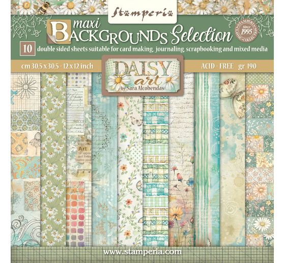Discover limitless creativity with the Scrapbook block "Daisy Art Backgrounds"! Be inspired by the enchanting motifs such as flowers, butterflies and lettering and turn every project into a work of art. With 10 sheets printed on both sides that are harmoniously coordinated, this pad offers you countless possibilities to let your imagination run wild.