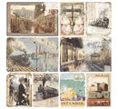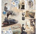 Experience the fascinating world of scrapbooking with our unique Scrapbook paper "Eastern Journey". Immerse yourself in an adventure of ornaments, nostalgic locomotives, traveling people and delicate butterflies that come to life on paper printed on both sides in soft shades of beige, grey and blue.