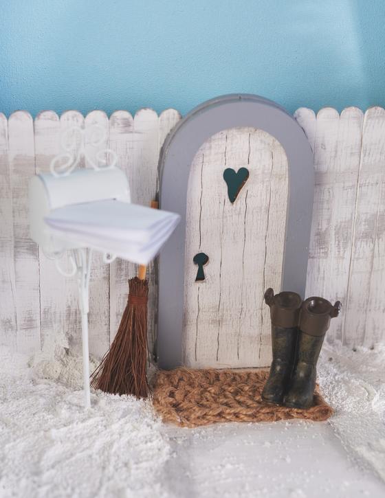 5. paint the miniature door with white and grey craft paint and let it dry.