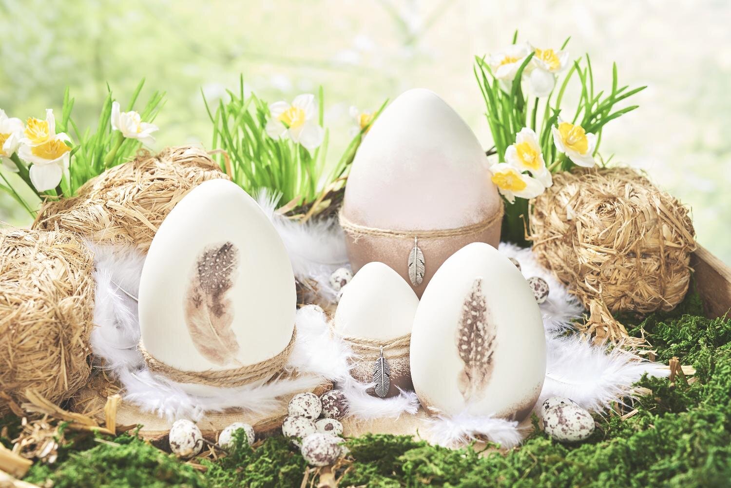 You want to use the white eggs as an exterior decoration? Then you should definitely cover the objects with a Protective varnish !