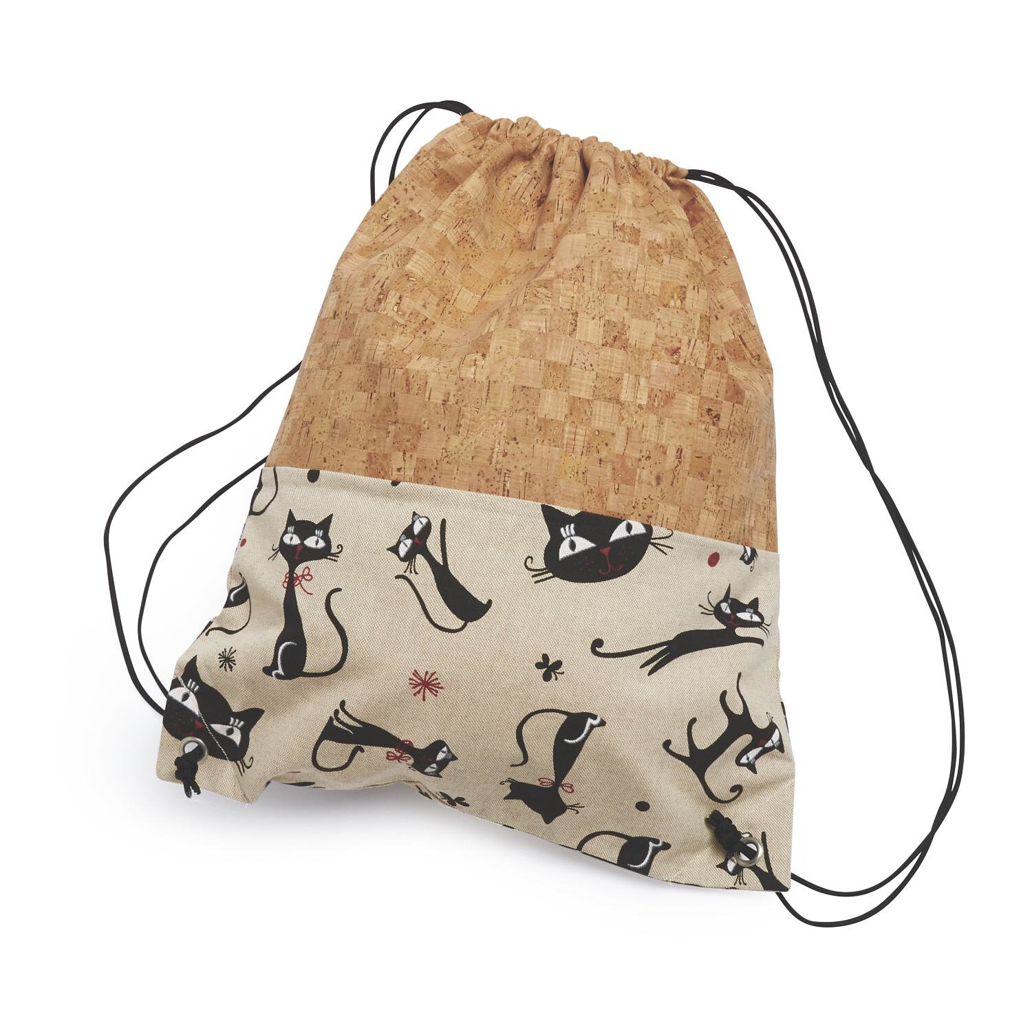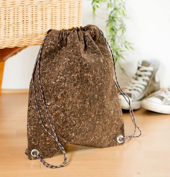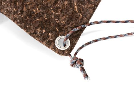Now the two lower corners of the bag are fitted with metal eyelets . The metal eyelets are usually delivered including punching tools. As described on the eyelet packaging, a hole is first punched in the fabric with a hammer or eyelet pliers. The eyelet is inserted into this hole and fixed with a hammer and the supplied tool.