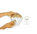 Paper mache is perfect for a design with craft paints, mineral sand, Décopatch paper, straw silk, napkins and much more. By designing with the Décopatch technique in combination with a patch glue and patch varnish, the vase also becomes water-repellent from the outside. Decorate the vase according to your own ideas and turn the shell vase into an extraordinary eye-catcher.