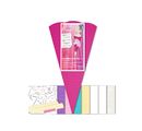 This creative set offers you a 3D corrugated colour cardboard that is not only sturdy but also easy to handle. With a diameter of 15 cm and a height of 41 cm, the school gift bag is perfectly proportioned to hold all the sweet surprises and useful school utensils you want to give your little treasure for the start of school.