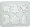 With this Silicone casting mould "Christmas molds" can be 6 individual Christmas tree ornaments and stylish pendants for gift packaging and loving greeting cards cast. The mold measures approx. 24.5 x 20.2 cm with a height of approx. 1.4 cm and a filling capacity of approx. 235 ml. The motif size is approx. 7.1 - 8.2 cm with an eyelet Ø of approx. 5 mm.