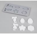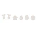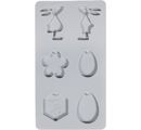 High-quality silicone casting mould "Easter friends & bee" with 6 motifs measuring approx. 5.5 - 7.3 cm with a height of approx. 0.8 cm. The moulded motifs have a hanging loop with a Ø of approx. 3 mm. The reusable, flexible mould is frost and heat resistant from -40 to 240 °C. The filling quantity is approx. 100 ml.