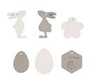 The cute Easter motifs can be poured using various casting compounds such as creative concrete, jewellery concrete, Raysin and casting resin. The bunnies are provided with a dot as an eye, which creates expressive faces on the finished castings. The hexagonal decoration pendant also has a filigree embossed bee on the inside, which really comes into its own after casting. The pretty motifs are suitable as individual decoration pendants for gifts and Easter decorations. The Easter shapes become particularly personal and chic with craft paints, Inka Gold, glitter and lettering in a hand lettering design. Ribbon can also be used to great effect.