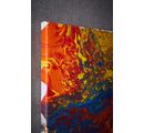 Then the stretcher is swung back and forth until the color has run. Depending on the composition and mixing ratio, the colors run together more or less uncontrollably and form spectacularly bizarre results during the drying process. Each of these methods has its own special charm.